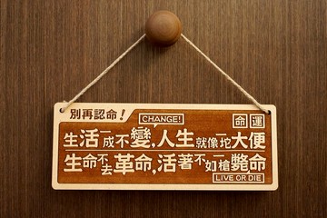 「別再認命」上聯:**生活一成不變,人生就像一坨大便。**下聯:**生命不去革命,活著不如一槍斃命。****Don’t Give In, Make Changes! ****Living a tasteless life, it’s like fish don’t know they are in water.****Life without meaning leaves ending it the only purpose.**尺寸寬:30cm / 高:12cm商品特色● 使用環保回收集成材「密底板」製作。● 使用雷射雕刻,精細度高,質感佳。● 可掛在牆上、門上、辦公桌等地方時時激勵自己。● Made in Taiwan另可選購「木製小對聯」:https://www.pinkoi.com/product/1t6IHg1H
