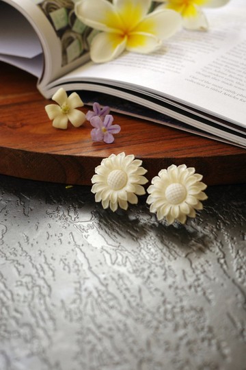 古董摩登復古vintage白色塑料花夾式耳環 c70