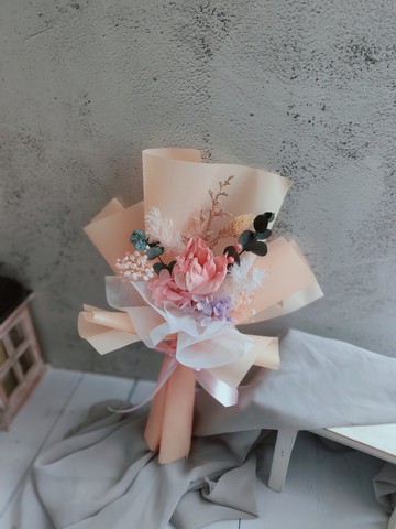 主花索拉花可以自行滴上精油或香水擴香唷!【作品尺寸】:約:25*32cm【花材】:不凋花、乾燥花、索拉花【作品特色】:使用不凋、乾燥花材,可長久保存,不需要澆水照顧手工製作,,不會完全一樣【如需客製化】:可以私訊討論希望色系【注意事項】:遇花材缺貨,設計師保有更換花材權利可工作室自取:在西門捷運站1號出口(紅樓附近),走路3分鐘即可抵達,交通十分方便!(請先私訊告知另開買場)------------------------------❀不凋花小常識❀不凋花為鮮花經過特殊處理,保有鮮花的柔軟度,並可染出鮮花所沒有的顏色,色澤美不凋謝、不需要澆水照顧、無花粉過敏問題,可保存1-3年,甚至更久唷~❀乾燥花小常識❀乾燥花葉材為自然乾燥,難免會有葉子、花瓣、果實褪色、剝落現象皆為正常,運送過程中難免會有花葉材掉落,能接受再下單唷~❀不凋花、乾燥花保存方式❀避免潮濕及陽光直射。儘量置於通風、乾燥的環境若沾染灰塵請用軟毛刷輕刷或吹風機冷風吹即可不需要澆水、不可以噴香水濕度太高時不凋花瓣會呈現有點半透明,請開除濕機或置於密封箱內,放置乾燥劑三天去除水分