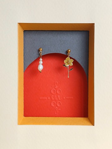 小花 (沖蝕黃色)・單邊淡水珍珠款