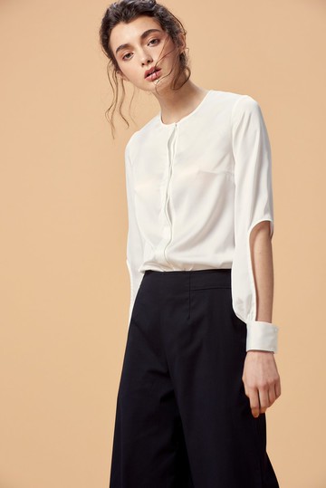 Off-seasom sale 袖口摟洞白緞襯衫