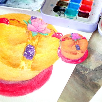拜拜時常見的鬆軟濕潤的古早味拜拜蛋糕表面不塗抹奶油多裝飾黑棗或罐頭紅櫻桃優點室溫可存放所以祭拜方便樸實微甜的味道也適合當成平時的小點心尺寸約3.2*3.3cm從原創手繪水彩畫擷取元素手工製作的作品。有任何問題歡迎詢問,感謝您。