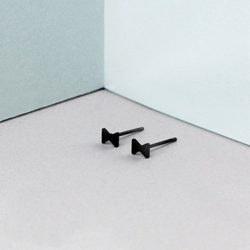 迷你小領結鋼耳環 - 黑色 銀色