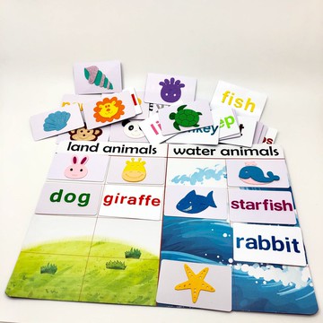 凸面-動物卡分 類:成長玩具配 件:32張圖卡學習目標:觸覺區別、認知能力玩 法:1.動手學習陸地和水裏生活動物2.學習動物英文生詞