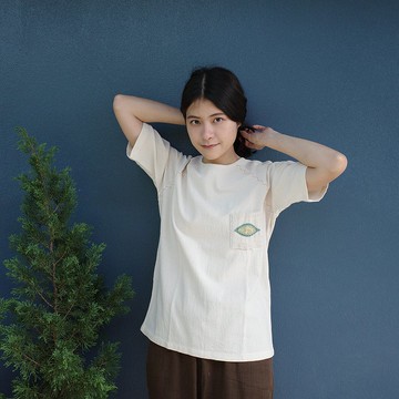苦瓜圖案胸袋棒球衫 / 手工刺繡 / 天然染料