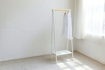 簡單的掛衣架,方型的木桿搭配圓型的鐵管,也有簡易的置物空間,讓掛衣架的使用更靈活。尺寸: 62X38.5X160(H) CM材質: 鐵管烤漆/松木木桿