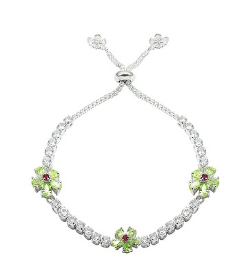 純銀八心八箭鋯石單排手鍊 - 野莓花(綠色)