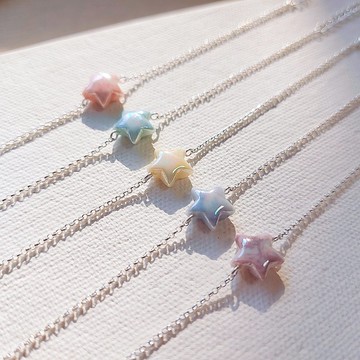 **【Lucky Star】**Best wishes to our best friends.**【材質與尺寸】**▫️ 手工陶瓷製品▫️ silver925 銀鏈▫️ 陶瓷部分: 約10 x 9mm,▫️ 手鏈全長: 約18cm (14cm + 延長鏈4cm)*如想訂製其他長度,請聯絡設計師。**【關於產品】**逐一人手製作,混色及上釉,並非以模具大量生產;其間經過3次高溫燒製,工序細緻嚴謹。陶瓷部份均經過1240°C以上釉燒,長久不易變色,碰水也沒有問題。幻彩塗層部分,是在第2次釉燒後,在陶瓷表面塗上特別的瓷用Luster,再進行第3次高溫窰燒而成的。幻彩部分受施釉方式及燒製溫度等多種因素影響,因此每顆的光澤都是獨一無二的。*由於陶瓷的特性,窯燒時陶瓷製品背面不能上釉,因此背面光澤略有不同。**本產品以Marbling方法混色,每顆幸運星的紋理及顏色深淺均不同,每顆都是獨一無二的。****【選項】**延長鏈尾部分基本設定為"Silver925"小銀牌,可選擇改為英文字母(A-Z)迷你銀牌。**請於訂單備註欄填寫選擇的英文字母(大楷A-Z中選一)。****【包裝】**以飾品盒包裝,保養抹銀布隨飾品送出。**【關於The Nine Fruits】**韓國手作陶瓷飾品品牌。獲選為韓國手工藝博覽(K-핸드메이드페어 K-Handmade Fair)的"名品 ‧ 名人展" (명품 ‧ 명인전 K-Handmade Luxury Brands)的品牌。**【購買前須知】***每件作品都是手工製作,因此大小與顏色漸變等均可能有少許差異,未必與照片完全相同。*925純銀,如氧化以抹銀布擦拭即可。*如貨存不足,產品製作時間約為5-7個工作日。提問會儘量於1-2個工作日內回覆(中/英/韓文皆可)**Designed & handmade in Korea**