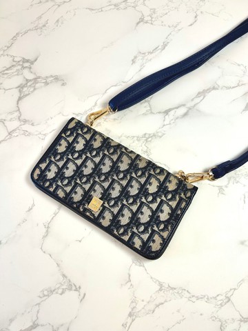 【初夏優惠】中古二手Dior深藍老花單肩側背斜孭揹包長夾小手袋
