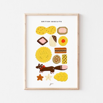 狐狸形狀的英式小餅乾,以不透明水彩Gouache手繪而成,色彩濃郁富有厚度。十分適合裝飾在咖啡廳,營造活潑又放鬆的氣氛。✖ 商品不含畫框 ✖ |紙張與商品說明|✶ 尺寸:A5 14.8x21cm A4 21x29.7cm A3 29.7x42cm ✶ Canon 六色專業印表機印製,細緻呈現如原畫般的不透明水彩質感。✶ 印刷在 270g RC頂級霧面啞光藝術相紙上✶ 每張畫作皆包含畫家簽名✶ 商品不含畫框|包裝|✶ A4尺寸以下:以透明袋包裝並背襯厚紙卡防止凹折,平裝在厚紙卡信封內郵寄。 A3尺寸以上:以透明袋包裝,成捲裝在海報筒內郵寄。|NOTE|✶ 照片會根據不同螢幕顯示產生色差,實際顏色請以商品為主。版權——————————————————————————畫家保有圖像版權,未經授權,不得任意複製販售或進行商業使用。Copyright © Yunjie Lin ALL RIGHTS RESERVED