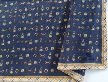 Burberry 古董手帕 – 馬術圖騰 – 格紋邊框 21 x 21 英吋