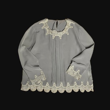 日本古著刺繡蕾絲鏤空長袖襯衫