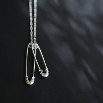 雙重安全別針 男士項鍊 胸針 銀質925