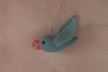 多年前我曾經做過啣著愛心的青鳥,那時的愛心是用羊毛氈做的,這次我使用愛心型的施華洛世奇水晶,效果也很美呢!鍊長是65cm,掛起來剛好是胸口的位置小鳥寬約6.5cm照片中的青鳥已售出,需重新製作,約需五個工作天(不含假日)製作,因手工製作的關係無法與照片一模一樣,請見諒。*另有深色款的青鳥項鍊,歡迎參考https://www.pinkoi.com/product/ZaJJetGD
