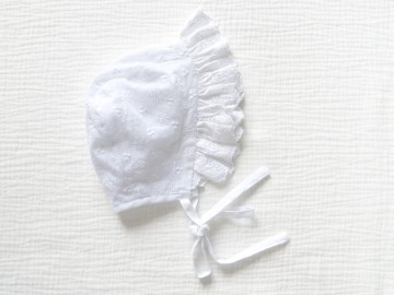 法式復古純白刺繡蕾絲手工嬰兒帽-寶寶彌月/周歲/洗禮/花童禮服