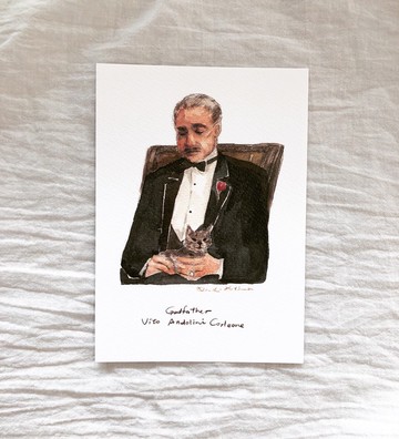 『你看的是電影,我畫的是人生阿!』電影插畫展的周邊紀念明信片。 沒來看展也可以買明信片收藏囉!我心中最愛的電影第一名就是教父全系列,第一代教父維托柯里昂,比起馬龍白蘭度詮釋的老年,個人更愛勞勃狄尼洛飾演的年輕版維托。但經典的當然是還是第一集開頭女兒婚禮上,維托抱著貓兒聽著客人們的請求,因此選擇了畫那幕作為主視覺。良心貓罐頭今年底的一個聯展,畫了很多很喜歡的電影作品.使用300磅高磅數水彩紙,漂亮的呈現了接近原稿的風采,錯過畫展,也可以買明信片收藏~一共印製了11款我最滿意的作品,有沒有你也喜歡的電影呢?尺寸:14.8公分*10.5公分.個別賣場或雙入組合賣場:Joker小丑2019:穿著Prada的惡魔-米蘭達:https://www.pinkoi.com/product/JzdNTTGD藝伎回憶錄-初桃:https://www.pinkoi.com/product/yxPFVNTG教父1 :https://www.pinkoi.com/product/GaE8azi4教父2:https://www.pinkoi.com/product/KNnHZMyY教父1+2組合:https://www.pinkoi.com/product/JC9yufS4親切的金子:https://www.pinkoi.com/product/ZPsvbLtX鬼店A:https://www.pinkoi.com/product/nPBXFLSX鬼店B:https://www.pinkoi.com/product/UynxeJ36鬼店A+B:https://www.pinkoi.com/product/qZeTdriq決殺令 :https://www.pinkoi.com/product/bdAtM5AZ黑天鵝:https://www.pinkoi.com/product/SpVT7tLC電影世界瘋狂者的集合:https://www.pinkoi.com/product/FGnEcfwX現在凡購買都使用高質感包裝喔https://live.staticflickr.com/65535/51226622752_f7305a1b20_b.jpg