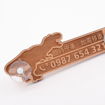 https://live.staticflickr.com/65535/48889617217_ecbb39d681_o.jpg│曾經統治地球的王者恐龍來自侏儸紀的全盛時期,小心!!牠們很迷人又很酷,也是最危險的物種。重量以噸位為單位,長度以公尺為主,和我們一樣生活在地球上,過去的霸者啊~https://live.staticflickr.com/65535/48888901698_452edfb209_o.jpg│臨時停車牌 客製化服務(A) 加入購物車清單後,進入付款前填寫在備註上面告知要雷射的電話號碼。(B) 訂購時請確認需求內容,製作後商品不提供更改服務。如有任何問題歡迎利用”聯絡設計師”詢問。**依消費者保護法說明****「客製化給付」不適用於網購七天鑑賞期內無條件退貨,敬請須知。**https://live.staticflickr.com/65535/48889437176_42bbcdb46c_o.jpg│拍謝!不好意思如果我的車停靠地點有給您的不便,請盡快以這支號碼和我連絡。貼在玻璃面的停車牌,清晰顯示電話號碼,臨時停車留下必要資訊。https://live.staticflickr.com/65535/48889437216_7f21d9ca9e_o.jpg│整件重量平均只有 30 g輕鬆貼附前擋玻璃,重量超輕不怕掉落。附贈 二顆 貼附直徑約 38mm 的吸盤,採用優質的橡膠材質,吸附力強。https://live.staticflickr.com/65535/48889617262_c0ee2a23d9_o.jpg│交織優美的紋路順著台灣檜木的美麗花紋去做雷射雕刻,燒出恐龍的輪廓,喜歡恐龍的巨大、神秘的色彩等諸多想像。有時燒得比較淺,也有較深的刻痕。隨著每件擁有不同的花紋出品,就有不同美麗的雷射表現。│商品規格一件台灣檜木停車牌卡-嘶吼款長度(含木頭耳朵):20.5 cm寬度:6.5 cm厚度:0.5 cm一個英文約:0.9 x 0.9 cm一個數字約:1.1 x 0.8 cm附贈吸盤 二顆,一顆可貼附的面積約直徑3.8cm**木材細緻、富於變化,每件的木紋組合皆不盡相同,很難有第二個同樣紋理、顏色等,有許些認知誤差純屬正常現象。**