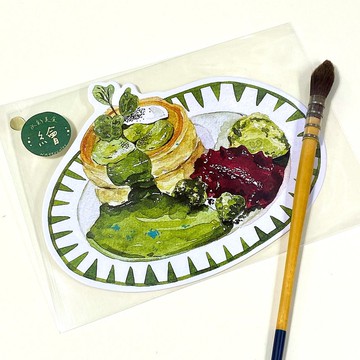 【手繪水彩系列】【日本食物】裁形手繪明信片—抹茶紅豆梳芙厘