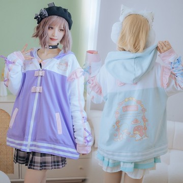 SIZE: F COLOR: 紫.藍 JILLPUNK × Little twin stars 吉兒龐克×台灣三麗鷗正版授權聯名原創設計款這次與三麗鷗旗下的明星角色《雙星仙子》KIKILALA聯名!將為大家帶來許多甜美可愛、夢幻系少女風格的原創服飾! 他們是雙胞胎的雙星仙子,為了成為更加明亮的星星而從遙遠的星之國度來到這裡。∴∵∴ ୨୧ ∴∵∴ ୨୧ ∴∵∴ ୨୧ ∴∵∴Little twin stars♥雙星仙子生日♥ 12月24日出生地♥ 夢幻星雲的關懷星球名字由來♥ 明亮閃爍的星星 ♥雙胞胎姊姊LALA♥ 喜歡秋天與冬天,會在皎潔清澈的冬季夜空下寫信給父親與母親。個性比較膽小而有點愛哭,喜歡畫畫、寫詩,擅長做料理。 ♥雙胞胎弟弟KIKI♥ 喜歡春天與夏天,會從雲端眺望開滿蒲公英的原野。具有旺盛的好奇心,但有些急性子,喜歡釣星星,擅長發明與發現新的星星。📌細節介紹:混棉布料製成的連帽外套,帶有舒適內裡以荷葉邊與緞帶裝飾,加上扣帶點綴 正反兩面都有雙星仙子主題的印花圖案袖口有緞帶,搭配袖身的撞色織帶整體是有點夢幻混合運動風的可愛外套下擺各有一個撞色邊條的斜切口袋用可愛來豐富你的每一天♫※服裝附有角色聯名吊牌與授權防偽雷射標籤∴∵∴ ୨୧ ∴∵∴ ୨୧ ∴∵∴ ୨୧ ∴∵∴https://live.staticflickr.com/65535/53662186505_78a95185da_o.jpghttps://live.staticflickr.com/65535/53513192342_f9017b6485_o.jpghttps://live.staticflickr.com/65535/53512517133_f856e476d1_o.jpghttps://live.staticflickr.com/65535/53655078531_89bd08169d_o.jpghttps://live.staticflickr.com/65535/53662076309_0eeae46f26_o.jpg