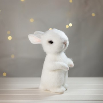 這款毛氈兔子玩具由新西蘭和意大利羊毛製成。室內玩具非常適合家居裝飾、兔肝禮物和玩具收藏家禮物。兔子小雕像製作精美的複活節籃子填充物和婚禮裝飾。兔子玩具完全是手工製作的。感覺是創造玩具的一個漫長的過程,所以需要一些時間,大概4-7天。白兔玩具高度為 6.5-7,5 in(16-19 см)我所有的物品都是手工製作的。請記住,這是藝術家手工製作的收藏品。不適合兒童或寵物。不要水洗,乾洗。請小心輕拿輕放,不要拉扯其纖維。材料100% 天然羊毛玻璃眼睛藝術家粉彩