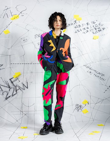**2022AW EXISTENCE**https://images.squarespace-cdn.com/content/v1/568d0036dc5cb4a5b51b342a/aee8fe7e-25fd-4eea-ac7e-d00d681b5982/INF22AW-01.jpg?format=2500w|**靈感**|本季主題為「Existence存在」,透過探討不同生活、人們各自立場迥異的生活哲學,藉此具象出台灣集體意識的存在輪廓,市場菜販、夜市攤商、打工族,甚至是檳榔西施,大家都為了各自的目的在打拼,藉由探討台灣的不同生活圈,體現台灣式美學與哲學。「紙本書籍就是存在」,羅馬詩人西賽羅曾說過「一間沒有書的房子,就像一個沒有靈魂的軀體。」,書本灌注了生命與靈魂的存在。印刷出版的書籍具備了不可修改性,歷史的穿梭、人生的百味,都能在字裡行間挖掘到,透過一本小說、雜誌甚至是工具書,書中人物、作者本人都在現實生活中留下了最直接的存在證明。本季與臺灣在地插畫藝術家周依合作,以時裝界不曾做過的「繪本」做為前導概念曝光媒介,以繪本故事內容勾勒台灣的生活故事,「22 AW Existence存在」以書本及其延伸物做為服裝設計靈感,提取書頁、書籤、便利貼、紙張的交錯與摺疊概念,將繪本內容圖樣幻化成時尚印花,呈現於服飾,展現出結合書本、文化與時裝的時尚盛宴。品牌也持續關注環保議題,大秀中可以看到利用杜邦紙打造的秀上概念服裝,杜邦紙材為抗撕裂、防水、抗汙且堅韌耐用的環保材質、焚燒後不會產生廢棄物且零污染,希望透過杜邦紙製作的服裝,響應環保、倡導永續時尚。|**設計**|#跨界聯名印花系列本季承襲了INF擅長的解構風格,將正統版型不斷的拆解重塑,勾勒出可變形且「一衣多穿」的系列作品;以書本及其延伸物做為服裝設計靈感,提取書頁、書籤、便利貼、紙張的交錯與摺疊概念,展現出結合書本、文化與時裝的時尚盛宴。版型解構正式以及休閒短版西裝並重塑,除了保留正式西裝的峻挺肩線與墊肩,也同時維持了休閒西裝的寬鬆份量,經過多道版型改良的工序,將腰身收得更明顯,不論男生或女生在穿著上都能使身材更加修飾;正面配置兩個實用口袋,背後做了開衩細節,在活動上不只更加方便,也能防止西裝下擺過於包覆臀部造成過多的皺褶。印花與臺灣在地插畫藝術家合作,以時裝界不曾做過的繪本「黑貓吉利」做為前導概念曝光媒介,以繪本故事內容勾勒台灣的生活故事,「22 AW Existence存在」以書本及其延伸物做為服裝設計靈感,提取書頁、書籤、便利貼、紙張的交錯與摺疊概念,將繪本內容圖樣幻化成時尚印花。此款INF跨界聯名黑印花西裝外套,可以搭配『跨界聯名黑印花西裝褲 』一同選購,變成一整套黑印花西裝套裝。https://images.squarespace-cdn.com/content/v1/568d0036dc5cb4a5b51b342a/36e5d82e-2b84-44f0-803a-3cc66e6228fa/INF+22AW+Crossover+White+Printed+Blazer+%284%29.jpg?format=1000whttps://images.squarespace-cdn.com/content/v1/568d0036dc5cb4a5b51b342a/55ca1530-35e8-426b-b7b0-c528b4edeacb/INF+22AW+Crossover+White+Printed+Blazer+%287%29.jpg?format=1000whttps://images.squarespace-cdn.com/content/v1/568d0036dc5cb4a5b51b342a/d03d3faa-5259-456a-ac6f-c44bcb4643b7/INF+22AW+Crossover+White+Printed+Blazer+%286%29.jpg?format=1000whttps://images.squarespace-cdn.com/content/v1/568d0036dc5cb4a5b51b342a/94eb70b8-8bce-42d9-9b89-0c9fe2b5e3b1/INF+22AW+Crossover+White+Printed+Blazer+%288%29.jpg?format=1000whttps://images.squarespace-cdn.com/content/v1/568d0036dc5cb4a5b51b342a/91287adb-7cff-4d66-a427-d8b56a7fb9ea/INF+22AW+Crossover+White+Printed+Blazer+%285%29.jpg?format=1000w|**材質**|純棉 100%|**顏色**|黑|**洗滌方式**|不可機洗低溫整燙不可漂白不可烘乾** INF 22AW臺北時裝週品牌秀 **https://youtu.be/NIWaT0dRv1o