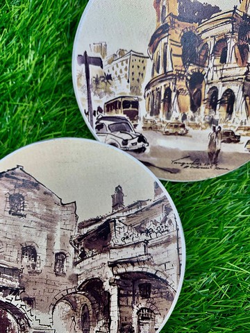 | 建築系列杯墊 |材質: 陶瓷商品尺寸: 直徑10 x 10 (cm)、厚度0.5 (cm)包裝尺寸: 11 x 11 x 0.7 (cm)顏色: 米白、卡其產品功能: 杯墊、擺設、展示 | 注意事項 |1.商品造型為楊英風藝術教育基金會所有,請勿翻製生產,以免侵權!2.商品皆為手工製作,請參考圖檔,確認後再下單。3.商品為陶瓷材質,會以盒裝方式包裝出貨。為避免破損糾紛。4.警語:本產品不適合4歲以下兒童使用。5.圖片標示「此照片為延伸小品原作雕塑」,供介紹商品用,無販售。6.商品收到後請儘快打開確認商品是否有無瑕疵,若是人為故意凹損、摺痕斷裂恕不接受退貨。| 製造產地 |台灣 / Made In Taiwan| 原作介紹 |著名的古羅馬鬥獸場(露天競技場)是世界八大名勝古跡之一,此座氣勢磅礡的古建築座落於義大利羅馬的威尼斯廣場南面,橢圓形的造型圍牆高57米,上下共分4層,可容納八萬名觀眾,它是現存最大的羅馬帝國時期的競技場,古羅馬時期,這裏曾上演著驚心動魄的奴隸和奴隸、奴隸和野獸間的生死博鬥,供皇帝和貴族們尋歡作樂。作者以淡彩作畫,畫面中的競技場運用黃色的淡彩著色,好似被陽光照射的金亮,而其細部則以黑色的線條勾勒,強調建築物的特徵並增添其立體感,而競技場下方的遊客則以十分簡約的幾筆點出人物的身形姿態,俐落的作畫手法使畫面乾淨清新而明亮。| 典藏單位 |原件由楊英風家屬典藏,本數位作品由財團法人楊英風藝術教育基金會及行政院文化建設委員會國家文化資料庫分別典藏※國際運費注意事項:除台灣本島、外島、中國大陸、香港、澳門地區,寄送其他國家的運費,請先詢問設計師,我們會協助估算最優惠的寄送方式。確認好實際運費之後,我們會另開運費專屬賣場給您下單付款