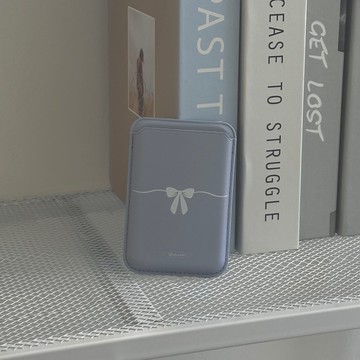 線條蝴蝶結 MagSafe 銀色超強磁吸皮革卡套