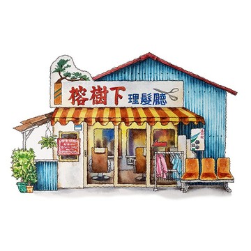 台灣街屋-花蓮復古理髮店-水彩手繪-數位微噴-懷舊-文青海報