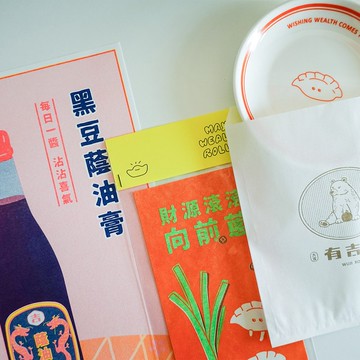 〔 新春商品全套優惠組 〕財源滾滾向前蔥春聯1入 - 好事滾滾來黑豆蔭油膏A4海報1入 - 每日一醬,沾沾喜氣沾沾沾醬油碟 1入 - 沾沾好運(加贈有吉室riso金色油墨復古紙袋)有吉室 | 自家生產的台味復古雜貨一匙台味,兩勺復古、一撮日系,攪拌在一起,穿梭在家的每個角落,陪伴大家越住越吉利Instagram @wuji_room財源滾滾向前蔥春聯-紙材 | 雅古紙 90g印刷 | riso孔版印刷油墨|金、螢光綠、橘尺寸 | 9X23.5 cm黑豆蔭油膏海報-紙材 | 砂糖紙 102.7 g/㎡印刷 | riso孔版印刷尺寸 | A4 21X29.7 cm沾沾沾醬油碟-材質 | 瓷器尺寸 | Φ12.8 x H1cm產地 | 中國孔版印刷會有些微的錯位,每一張印刷品都會有不同的獨特性面積較大的顏色區域,較有滾輪印、針跡等等RISO的特性印刷油墨為半水性大豆油墨,並不會完全附著於印刷紙張上,手指碰觸後可能會沾黏到少許的油墨陶瓷器皿於高溫燒製過程中可能產生小黑點、小刮痕、凹凸痕跡等,為正常現象,並非瑕疵範圍,介意者請謹慎下單。