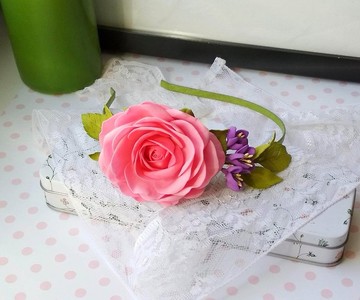 一款帶有粉紅色玫瑰與紫色小花的髮箍,適合女性與女孩配戴。是打造休閒節慶造型、或用於攝影的精緻配件。尺寸:玫瑰花約 3.2 英吋 (8 公分),小花約 0.8 英吋 (2 公分)。髮箍基底為金屬材質。花朵由特殊泡棉材質製成,具備以下優良特性:- 重量輕巧- 防水- 無懼陽光、風雨、霜寒- 即使受壓也能恢復原狀,不怕摔落- 低過敏性- 花瓣觸感柔軟如天鵝絨,宛如真實花朵。此髮箍上的花朵皆為手工製作。每一個花瓣都經過手工製作與染色,使這款飾品更加獨特。是贈送給女孩的絕佳禮物。您可以在此購買帶有白色銀蓮花(圖五)的髮箍:https://en.pinkoi.com/product/XLS2QXj8您可以在此購買帶有紅色罌粟花(圖六)的髮箍:https://en.pinkoi.com/product/Nfi2cJvd如果您喜歡這款髮箍,但對顏色或尺寸不甚滿意,歡迎與我聯繫客製化訂製。我很樂意為您打造專屬的飾品。保養須知:- 請勿水洗- 可用軟布沾少量肥皂擦拭髮箍實際顏色可能與照片略有差異,此乃因您的螢幕設定所致。敬請注意,買家需自行負責貴國海關可能徵收的關稅及進口稅。感謝您光臨我的商店!