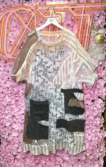 蕾絲鉤針連衣裙,黑面料,手工製作