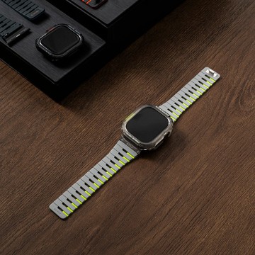 適用於 Apple Watch 10 / Ultra 2 / UltraGEMINI Apple Watch 錶帶採用發光材質,夜間佩戴也能引人注目翻轉佩戴:雙色設計提供,3種佩戴方式,一翻即換一秒即吸附:輕輕一放,吸附即穩固,佩戴更輕鬆、牢固安全扣設計:堅固不銹鋼材質,防水透氣,兼顧舒適與耐用不銹鋼扣具:量身定制優質不銹鋼,堅韌耐用,時尚百搭適合165–210mm手腕,輕鬆調整,完美貼合ATOM Apple Watch 保護殼採用發光材質,夜間佩戴也能引人注目360度防護預防日常碰撞混和材質外殼兼具耐用性與手感精準孔位輕鬆好操作夜光款強度取決於產品吸收陽光或燈光的時間。建議在暗處使用前,將錶帶置於光源下充分照射,以獲得最佳夜光效果。https://cdn.shopify.com/s/files/1/0610/7598/0528/files/SK_Gemini__1_5397a382-5389-4e86-9111-c8ef56af9c92.jpg?v=1741676876&width=850https://cdn.shopify.com/s/files/1/0610/7598/0528/files/SK_Gemini__2.jpg?v=1741676878&width=850https://cdn.shopify.com/s/files/1/0610/7598/0528/files/SK_Gemini__3.jpg?v=1741676879&width=850https://cdn.shopify.com/s/files/1/0610/7598/0528/files/Gemini_941daf1e-69b7-487b-8608-df043334e197.jpg?v=1742889273&width=850商品規格Gemini 雙色矽膠磁吸錶帶夜光組- 品牌:SKINARMA 日本東京- 適用:49/46/42mm- 材質:矽膠- 顏色:夜光- 尺寸: 錶殼 - 42mm:47 x 41.08 x 10.96 mm 錶殼 - 46mm:51 x 44.39 x 10.88 mm 錶殼 - 49mm:53.82 x 47.46 x 14 mm 錶帶 - 42mm:116mm + 100mm 錶帶 - 46mm:126mm + 108mm 錶帶 - 49mm:126mm + 108mm - 重量: 錶殼 - 42mm:2.5 g 錶殼 - 46mm:3 g 錶殼 - 49mm:5 g 錶帶 - 42mm:31.2 g 錶帶 - 46mm:37.4 g 錶帶 - 49mm:37.4 g- 內容物:錶帶 x 1、錶殼 x 1※ 顏色以實物為準