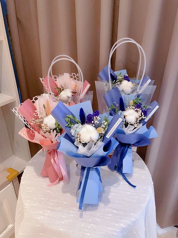 紅豆粉棉花花束 小花束 乾燥花束 生日禮物 畢業花束 情人節花束