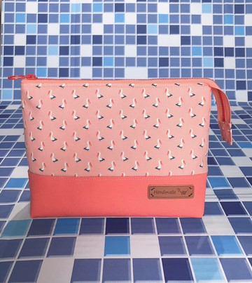 【造型化妝包】粉橘色可愛小紅鶴 日本進口布
