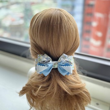 氣質立體蝴蝶結彈夾髮夾髮飾頭飾-淺藍底小花