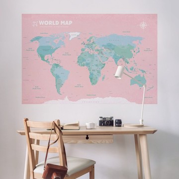 【輕鬆壁貼】世界地圖/斑粉 - 無痕/居家裝飾