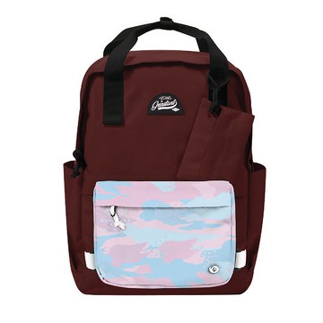 Grinstant混搭可拆組式13吋後背包 - 冒險系列 (深紅色配迷彩粉)
