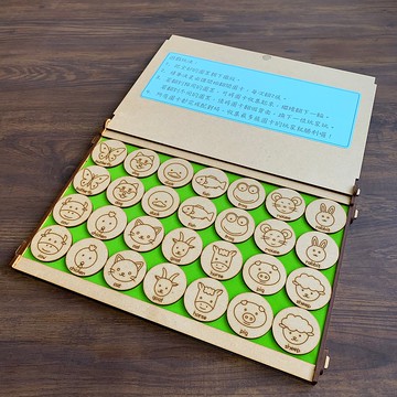 **《遊戲玩法》**1. 把全部的圖案朝下擺放。2. 猜拳決定由誰開始翻開圖卡,每次翻2張。3. 若翻到相同的圖案,可將圖卡收集起來,繼續翻下一輪。 若翻到不同的圖案,須將圖卡翻回背面,換下一位玩家玩。4. 所有圖卡都完成配對時,收集最多張圖卡的玩家就勝利囉!**《設計特色》**◆遊戲力培養:加強小朋友的觀察力、反應力、記憶力、專注力◆創意彩繪:可彩繪上色,發揮手作無限創意,不論是壓克力顏料、蠟筆、彩色筆...等都可以,各有不同的美感。◆簡潔收納:精美木盒及強力磁鐵磁吸蓋板,方便收納或攜帶,放在桌上隨時可玩。◆精緻質感:雷射雕刻切割,精細度高,質感佳。◆MADE IN TAIWAN:台灣設計、台灣製造,品質可靠。**《詳細規格》**材質:紐西蘭MDF環保木材產地:台灣設計、台灣製造設計製造商:WOOXO製造方式:精密機器製造內容:配對盒1個 + 配對圖卡14對配對盒尺寸:27 x 19 x 1.5 (cm)重量:約 250 (g)**《材料介紹》**紐西蘭MDF環保木材:MDF為Medium Density Fiberboard的略稱,也稱中密度纖維板。是一種將木材粉碎為木質纖維後加入合成樹脂,再經由加壓加熱整形而成的板材,並以 JIS日本工業標準規格監督製造而成,符合最高等級F4星認證。**《注意事項》**請保持乾燥,避免放置在潮濕環境,也切勿浸泡水中。請避免太陽過度曝曬,易造成木材劣化龜裂。請遠離火源,勿放至於易燃乾燥、高溫的場所。雷射切割部分木質會有些微焦痕,屬正常現象。本產品為木製商品,無化學染色或添加,會有天然色差。商品圖檔顏色亦因拍攝、螢幕設定差異會略有不同,請以實際出貨商品顏色為準。**《保養提醒》**如有汙痕,可用乾布擦拭或用細砂紙輕磨即可,請勿使用水及化學洗劑清潔。木製產品屬於易碎材質,請勿強力施壓,避免導致破裂損壞。\t**《品牌理念》**WOOXO木創設計及製造溫暖系的木創商品,讓實用、童趣、居家、隨時學,融入設計、產品及生活。WOO=溫暖的木作原料 WOODOXO=小時簡單易學的OXO井字遊戲從簡單生活出發,設計生活中有趣的商品。