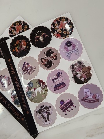 Zihling 的迷你貼紙套組精選 12 款圓形迷你貼紙,每一枚皆為 Zihling 原創插畫。從神秘雙胞胎、華麗旋轉木馬,到暗黑甜點與花草生物,每個圖案都洋溢著奇幻與優雅交織的童話氛圍。・每張貼紙直徑約 2.5 公分・材質為銅版亮膜貼紙・一張共含 12 款小圖案,一份共五張・適合手帳、包裝、裝飾等用途讓這些小巧的貼紙,為你的日常增添一點詩意與怪奇吧。