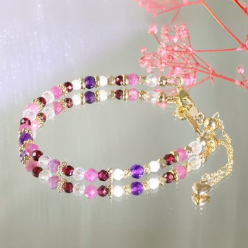 **// ✼✼ 雪の物語系列-糖果屋 ✼✼ //**愛的滋味如蜜般漫溢,層層甜蜜將心包裹,願每段路途,都有如糖般的柔軟與溫暖。**// 商品說明 //**✦ 主石:粉碧璽 4mm✦ 其他搭配水晶:紫水晶 | 石榴石 | 白水晶 | 藍月光✦ 純銅鍍14k真金配件 | 可調式延長鏈✦ 手圍:約15 (可免費修改,超過17手圍需加收費用喔~)✦ 鍊型:照片為延長鍊示意款 (可依配戴習慣,客製更換為延長鍊/磁扣鍊)**// 礦石靈性 //**✦ 白水晶:淨化能量場、增強正能量、助冥想✦ 石榴石:提升活力、增強創意能力✦ 粉碧璽:促進血液循環、增強愛的能力、改善情感交流✦ 紫水晶:助冥想靜心、提升靈性、增強智慧✦ 藍月光:助心輪、促進情感交流、增強愛的能力**// 品牌出貨環保包裝 //**所有手鍊出貨時將附贈:1. 環保牛皮質感品牌紙盒2. 品牌束口袋 or 精美手鍊盒 ✦ 可任一選擇,若需額外加購可於下方連結加購 ✦ 加購品牌束口袋 $30 https://www.pinkoi.com/product/E7fE4tgd ✦ 加購精美手鍊盒 $50 https://www.pinkoi.com/product/SucBh97v3. 約 100g 的白水晶淨化碎石 (可降解 EVA 夾鏈袋)https://meee.com.tw/010cAXN.jpg**// 購買須知 //**1. 所售飾品皆為個人專屬訂製品,非因商品瑕疵不接受退換。2. 產品相片皆經微距拍攝,請留意天然石標示尺寸,免生誤解。3. 每一批天然石的色澤深淺均有差異,這是天然寶石的特性所致。 因此,不同批次之色彩差異並不屬於商品的瑕疵範疇。4. 我們將依照訂單順序進行客製化商品製作,若提前完成製作,將優先安排發貨。 敬請您耐心等待,感謝您的體諒與支持。5. 由於拍攝角度、光線狀況、電腦螢幕顯示以及個人主觀因素,照片與實物可能會出現些微的色差。 請以實物為主要參考依據。6. 每顆天然石具有獨特生命和特色,具有多樣色澤、紋理。 因此,產生不對稱、天然冰裂、微雜質斑點、輕微表面刮痕等情況屬自然,非瑕疵。 選購即視為接受此情形。7. 我們的所有商品均由設計師親自手工打造,因此標示的尺寸可能與實際大小略有微妙差異。 這是手工製作與工廠機器生產的分別所在。如您追求工整與精準,建議考慮選購工廠生產的量化商品。8. 下單後將被視為您已閱讀並同意上述說明事項,感謝您的理解與配合。**// 商品保固 //**✦ 凡購買 ShiningStar 商品,皆享有三個月保固。✦ 三個月內非人為損壞皆可免費維修乙次,超過須酌收維修費用。✦ 飾品金件可提供換新服務,根據款式酌收工本費。✦ 日本進口彈力線屬正常消耗品,於購買日起一年內享免費換線服務乙次。✦ 以上售後服務,請回傳照片先行報價,並需自行負擔來回運費。**// 保養須知 //**✦ 避免接觸香水、酒精、保養品、洗沐品等化學物質,並避免配戴洗澡、游泳、碰海水、泡溫泉。✦ 配戴時如有出汗,盡量以清水沖淨後擦乾。✦ 平時可收入密封袋保存,以延長飾品壽命。