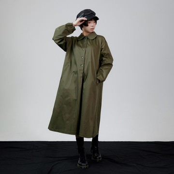 客制 32支精梳棉高密棉質 翻領單排扣風衣 長外套 墨藍