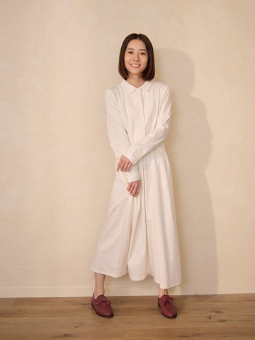 純棉大翻領鬆緊澎袖襯衫洋裝