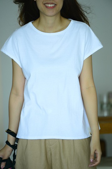 出品寬松自然邊圓領基礎短袖文藝