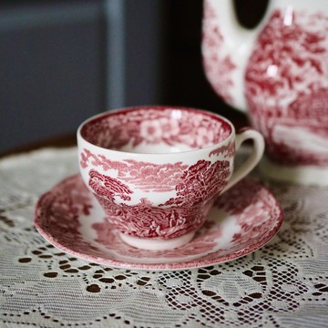 復古英國 Unicorn Tableware 紅白色陶瓷杯碟組