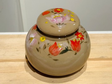 年節好禮滿心意 赤花拾夢 手工繪製 茶葉罐陶瓷密封罐由繪師在陶坯上一筆一畫 巧手繪製而成經久耐看手工繪製茶葉罐精緻且飽含心意不管是儲物、存茶、擺設皆是美觀圓潤的罐口 寬口好使用將放茶葉儲藏在裡面,擁有茶葉香氣送禮自用兩相宜一個茶葉罐 尺寸: 含蓋高度約10.5cm、直徑約12cm、內口徑約4.5、蓋子直徑約7.5cm因手工測量 若有些許誤差請見諒與瓷器相比,陶的質感沉穩呈現與瓷器不同的溫潤質感在1230度高溫燒成,花面均為手工繪製,釉色彩繪非機械化的工整一致有手繪筆觸的痕跡,透明釉為手工施釉,若有些許不平整的痕跡屬正常現象,陶製品為手工製作燒製,若有一些小黑點、針孔、氣泡等屬正常現象,非瑕疵,可以接受者再下訂~可接受訂製但每件會因手繪關係略有不同,可以接受者再下訂。訂製時間會依內容的複雜度而有所不同,大約為14~28天不等。可來信與設計師討論~~#此款茶葉罐可放置的茶葉量約四兩左右因手工測量 也會因茶葉種類不同而有異 僅供參考#年節送好禮#商品具裝飾及收藏價值#適合收藏自用、新居落成、升遷榮調、退休紀念等禮品#商品皆為實品拍攝,但每台電腦螢幕的不同,也會因擺放角度與光線顏色等問題與實體也許會有些許差異,可接受者才下訂。#出貨前皆有嚴格檢查及完整包裝保護商品,寄送安全 不用擔心^^