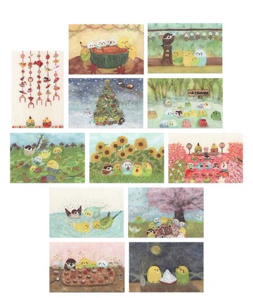 可享受季節感的明信片 B 套組,內含 12 張*尺寸明信片尺寸 (148mm × 100mm)採用類似水彩紙般觸感舒適的紙張印刷。精心挑選能傳遞小鳥柔和氛圍的紙張。※備註● 描繪了日本風景,也非常推薦給海外的朋友們用於 Postcrossing。● 送給喜愛鳥類、動物的朋友作為禮物、信件或居家裝飾畫,皆能令人欣喜。請注意,可能會有輕微的色澤濃淡差異或個體差異。因採用噴墨印刷,請務必注意防潮。-------------------------------------------------------------------------可愛的小鳥們大集合♪ 讓人被蓬鬆的小鳥和牠們惹人憐愛的姿態療癒 ♪畫作中包含虎皮鸚鵡、麻雀等各式各樣的小鳥。希望您能自由地想像這些小鳥們的故事。
