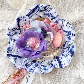 這是一款使用法國 MALHIA KENT 公司粗花呢面料製作的胸花風格別針,為手工製作。**素材**・法國粗花呢面料(MALHIA KENT)・珠子與亮片(復古及現行)・水鑽・法國復古緞帶與鈕扣・古董布花(花瓣)・塑膠珍珠・古董布花・刺繡線等。別針附有矽膠止滑套。別針上的裝飾線可拆卸。**尺寸**直徑9cm本商品將以EMS寄送,並提供追蹤號碼。**************************************************● 虽然布料和布料边缘使用了「防脱线」处理,但由于斜纹软呢的特性,可能会发生少量脱线。● 每件作品都是手工制作,因此颜色和形状可能会有些许差异,敬请谅解。● 此作品非常精致,请小心处理。● 由于作品较为脆弱,请注意不要施加过大的力量或拉扯。● 请注意,由于电脑或手机显示屏的设置不同,实际颜色可能会略有差异。● 此商品未进行防水处理,请避免与水接触。● 本商品仅供个人使用,请勿以转售给第三方为目的进行购买。● 由于摩擦和沾水造成的脱色和污损无法避免,敬请理解。● 我们不接受议价。**************************************************花朵胸針 小花胸針 手作胸針 串珠胸針 可愛飾品 夢幻風 閃閃亮亮原創設計 礼物 礼品 多彩