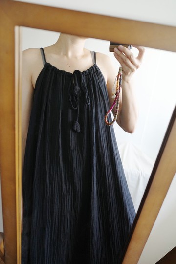 泰國雙層紗細肩帶綁帶長洋裝 黑色