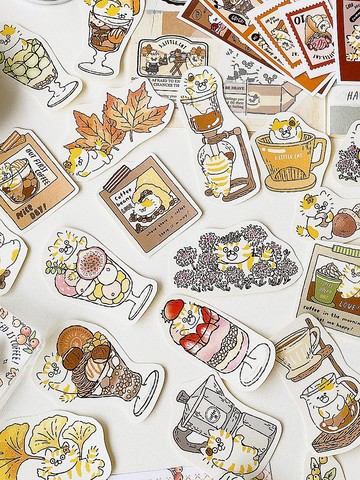 3小喵咪秋日花卉咖啡拍立得貼紙包/手帳貼紙/共5款