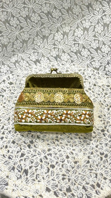 MBC 人手製 12cm方形口金 絲絨刺繡帶 聖誕綠